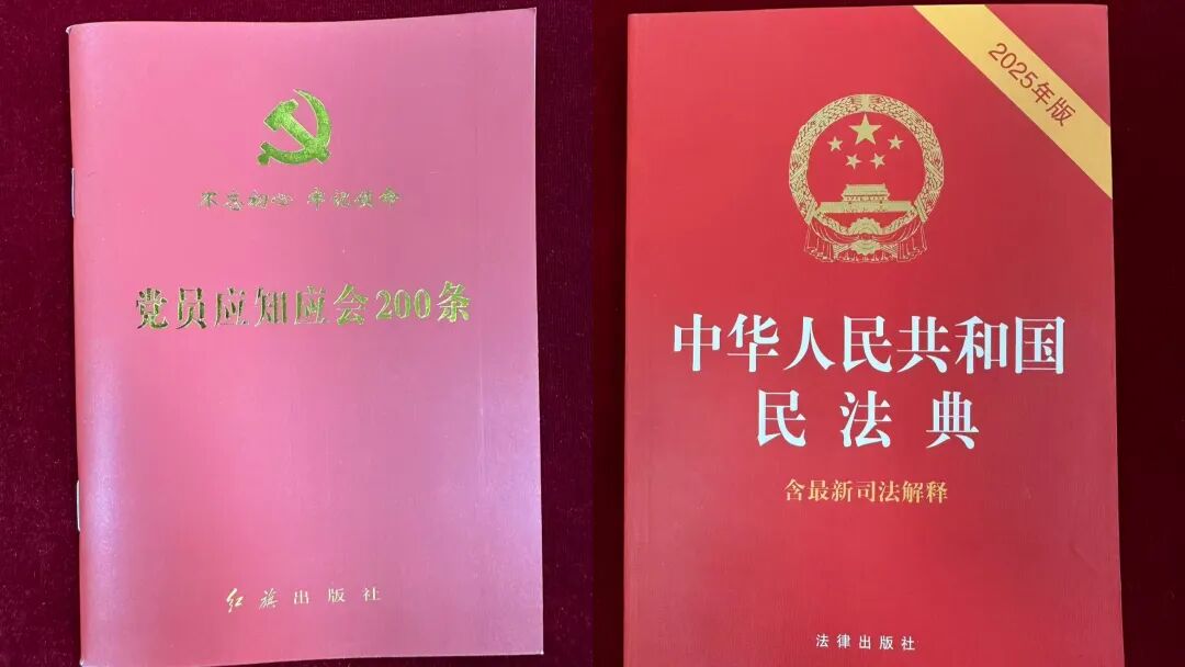 送上了《民法典》《党员应知应会200条》及保温杯纪念品。